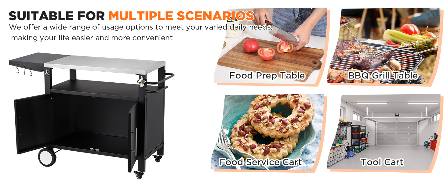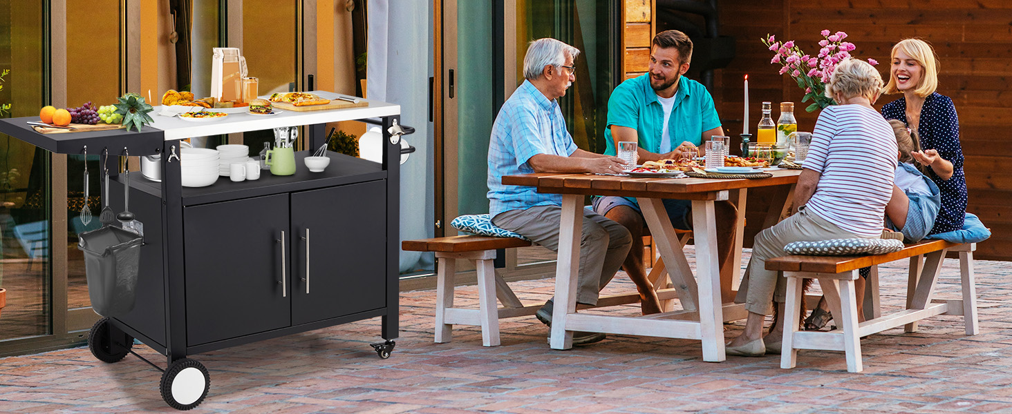 This all-in-one outdoor grill table is perfect for more than just BBQs. Use it as a mobile prep station, pizza oven stand, patio bar cart, or indoor storage solution. Ideal for camping, backyard cooking, garages, tool sheds, or outdoor kitchens.