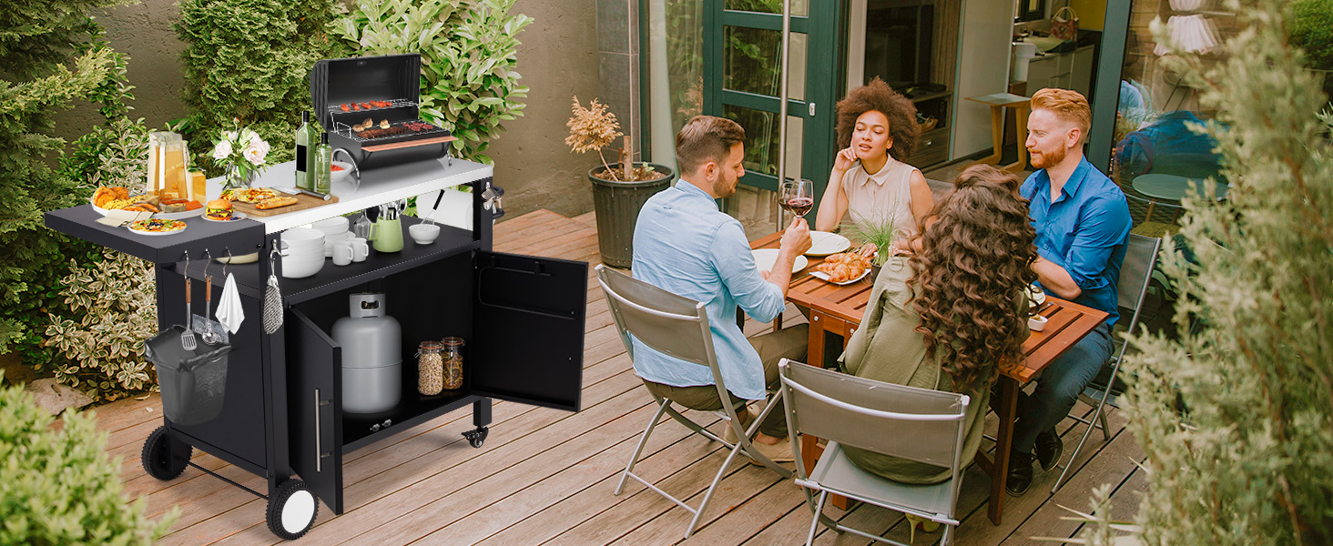 Outdoor Grill Table with Storage & Wheels – Versatile BBQ Prep Station