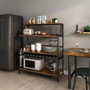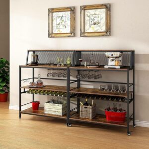 - Ample and Versatile Storage: This home bar table offers a generous storage capacity, featuring three spacious open shelves, one narrow shelf, a wine bottle rack, and four rows of wine glass holders. You can conveniently store wine, wine glasses, kitchen essentials, coffee maker, bread machine, decorations, and more.